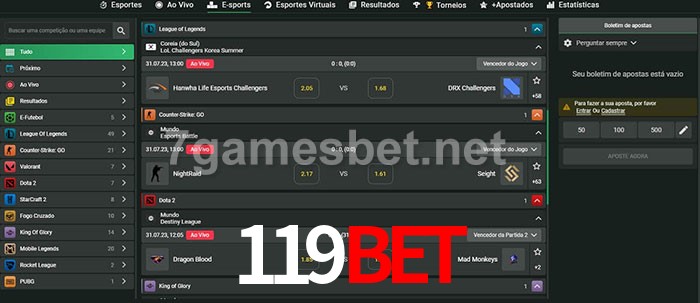 A aposta 119bet oferece aos jogadores a experiência mais conveniente de apostas em eSports!
